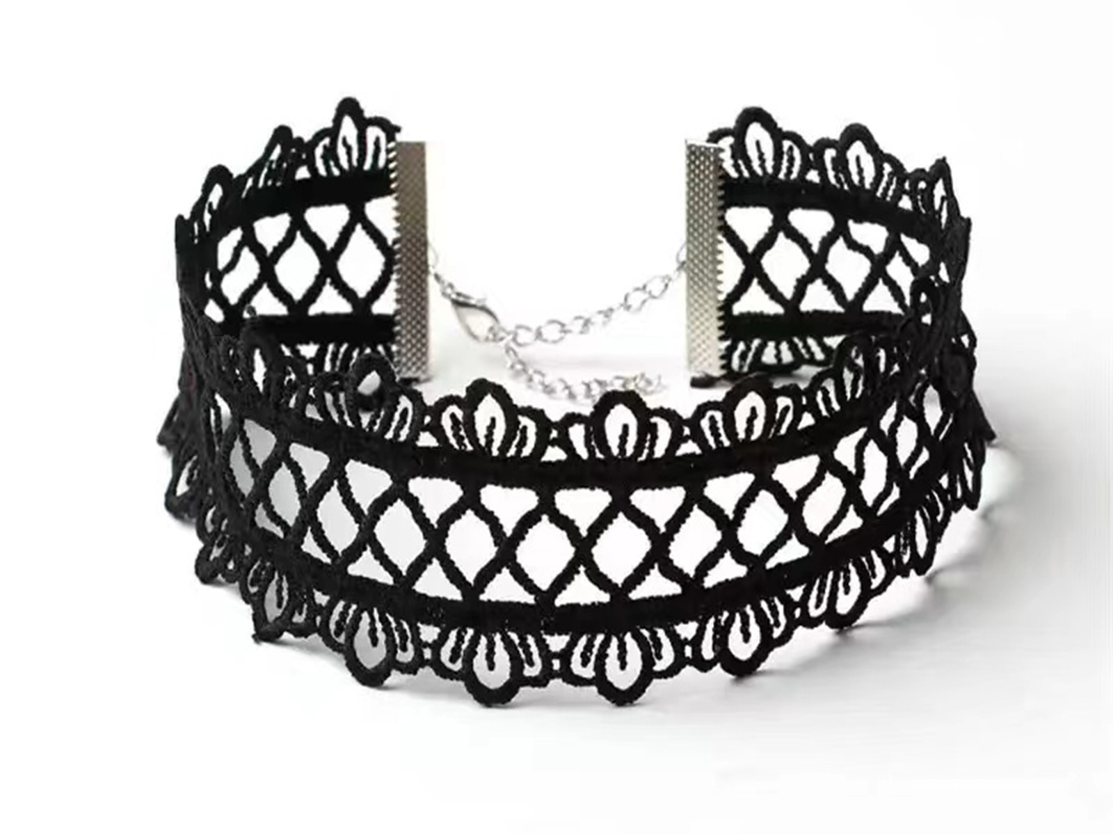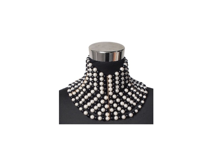 Set van 3 chokers, bestaande uit 1 versie met parels, 1 met een slotje en 1 van kant.