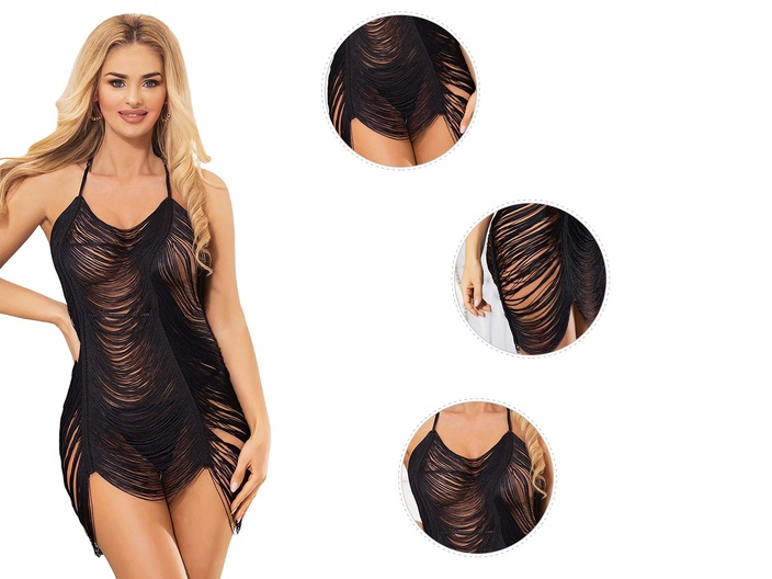 Deze prachtige en onweerstaanbaar sexy jurk met franjes is perfect om uw vrouwelijke kant te laten zien! Er is veel zorg besteed aan het ontwerp. De zijdeachtige franjes zorgen voor een speels en sexy effect. Licht teasend doordat het uw lichaam goed laat zien. Deze fringe jurk kan dienen als nachtkleding, sexy lingerie of als stimulerende seks kit voor u en uw partner. Kortom, deze lingeriejurk zorgt voor een gepassioneerde avond!